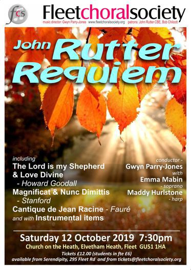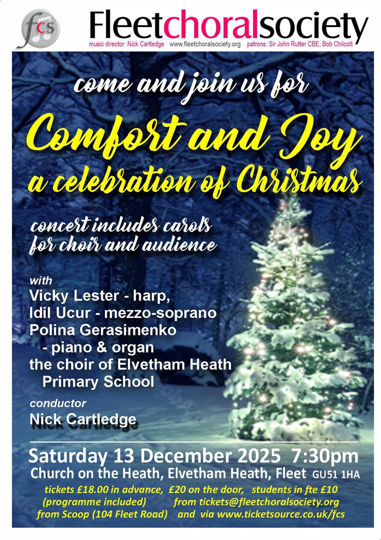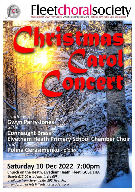 Further information from tickets@fleetchoralsociety.org. Tickets are also available in advance from Scoop, 104 Fleet Road, Fleet.